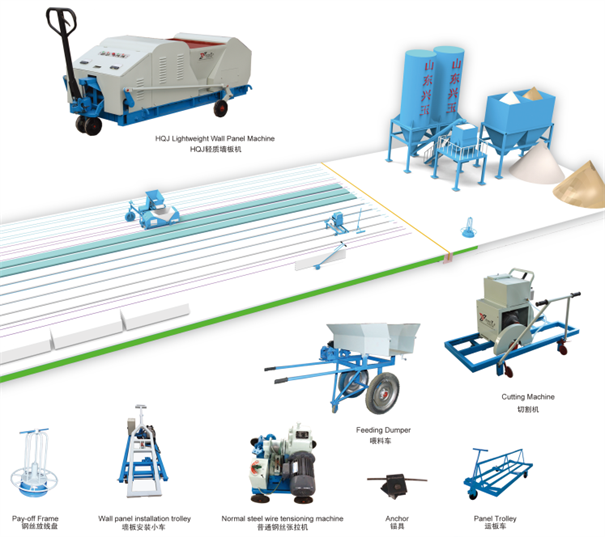 輕質(zhì)墻板機(jī)設(shè)備的生產(chǎn)工藝簡(jiǎn)單,設(shè)備自動(dòng)化程度高,勞動(dòng)強(qiáng)度低,流水線作業(yè),生產(chǎn)過程無噪音無三廢排放。墻板機(jī)設(shè)備能耗低,不需高溫、高壓,利用化學(xué)反應(yīng)自身科釋放熱量,達(dá)到生產(chǎn)工藝要求。